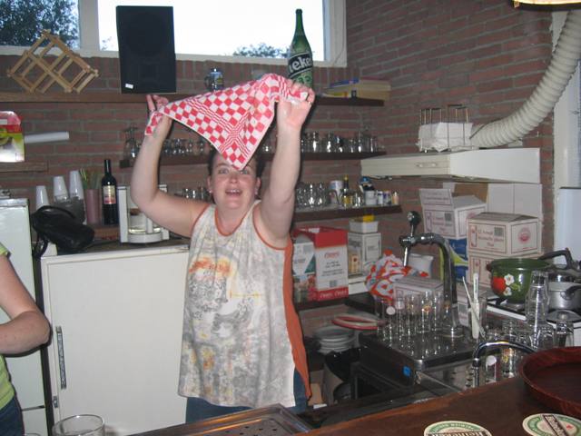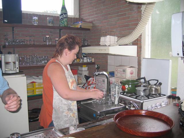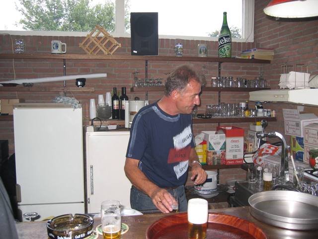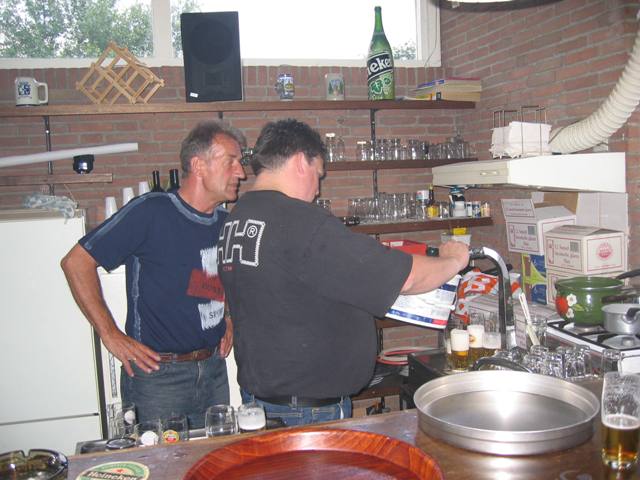 Jan in gevecht met de bierpomp - Oofie kwam hem te hulp