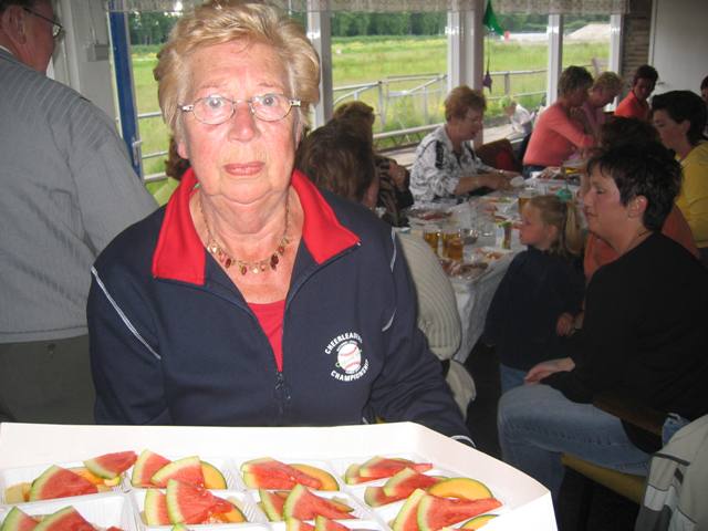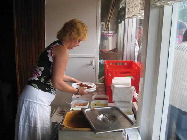 Het eten wordt uitgereikt Meloen - Slaatjes en diverse soorten vlees