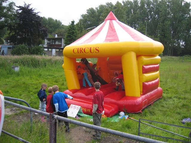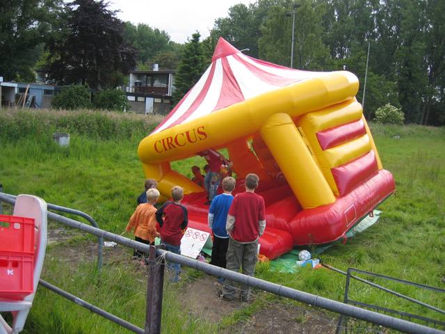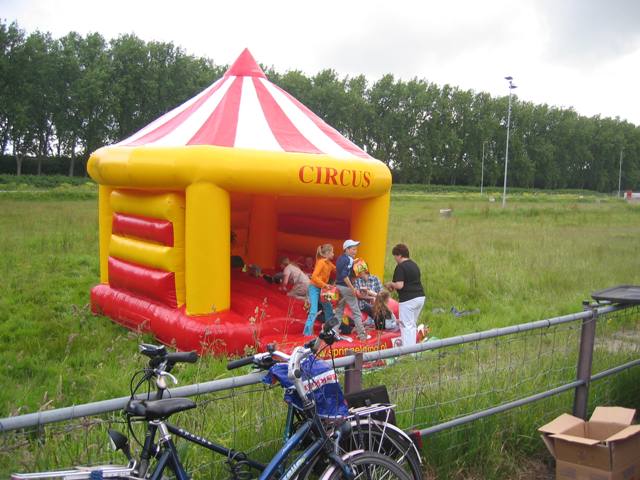 Van het springkussen werd druk gebruik gemaakt toen hij bijna omviel werd hij opgeruimd
